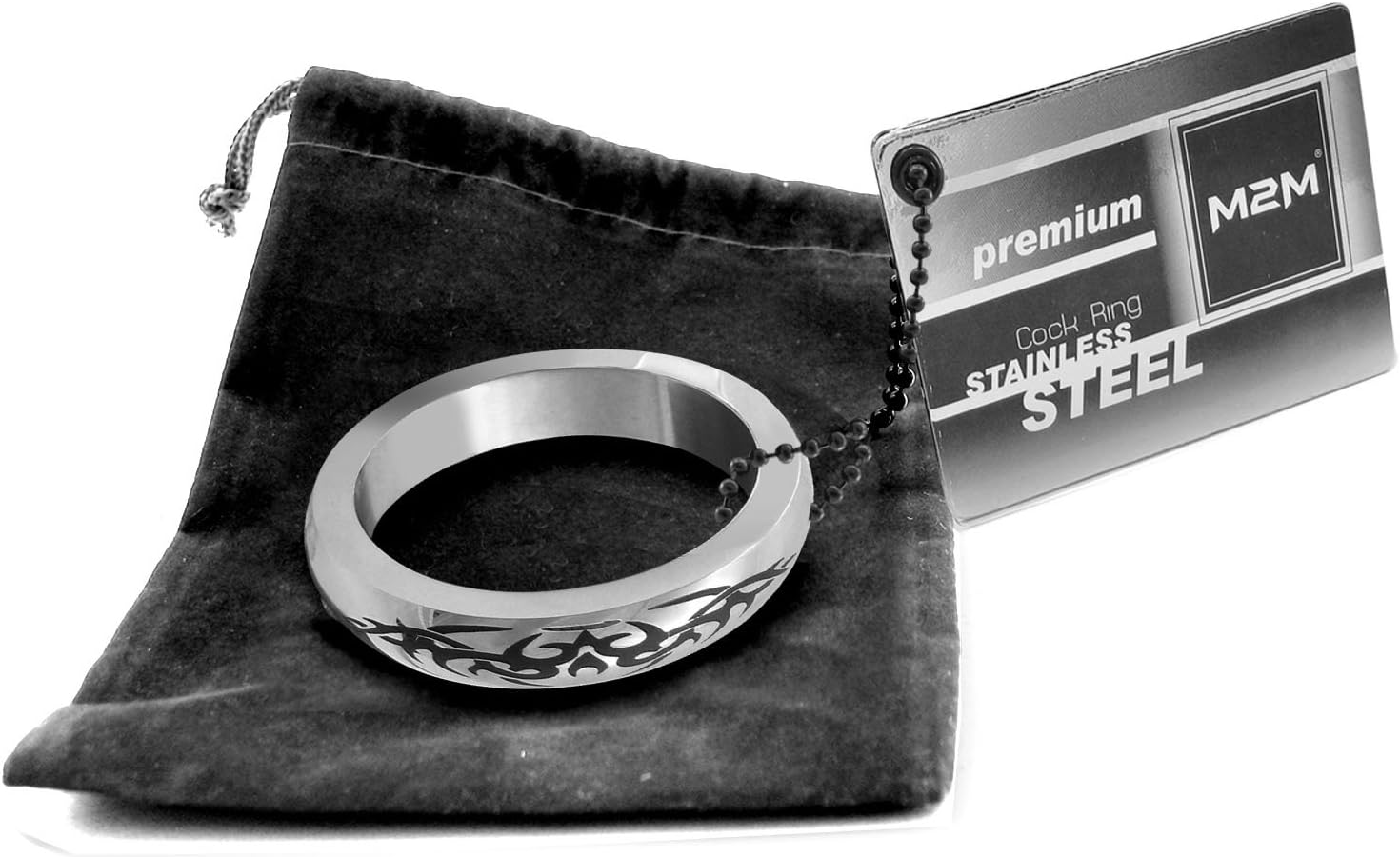 At last, a stainless steel cock ring that is both beautiful and affordable! this 100% stainless steel cock ring in gleaming chrome is accented with a contemporary tribal design. this 2.0" beauty ships in a black velvet pouch and is also available in sizes 1.875" and 1.75"