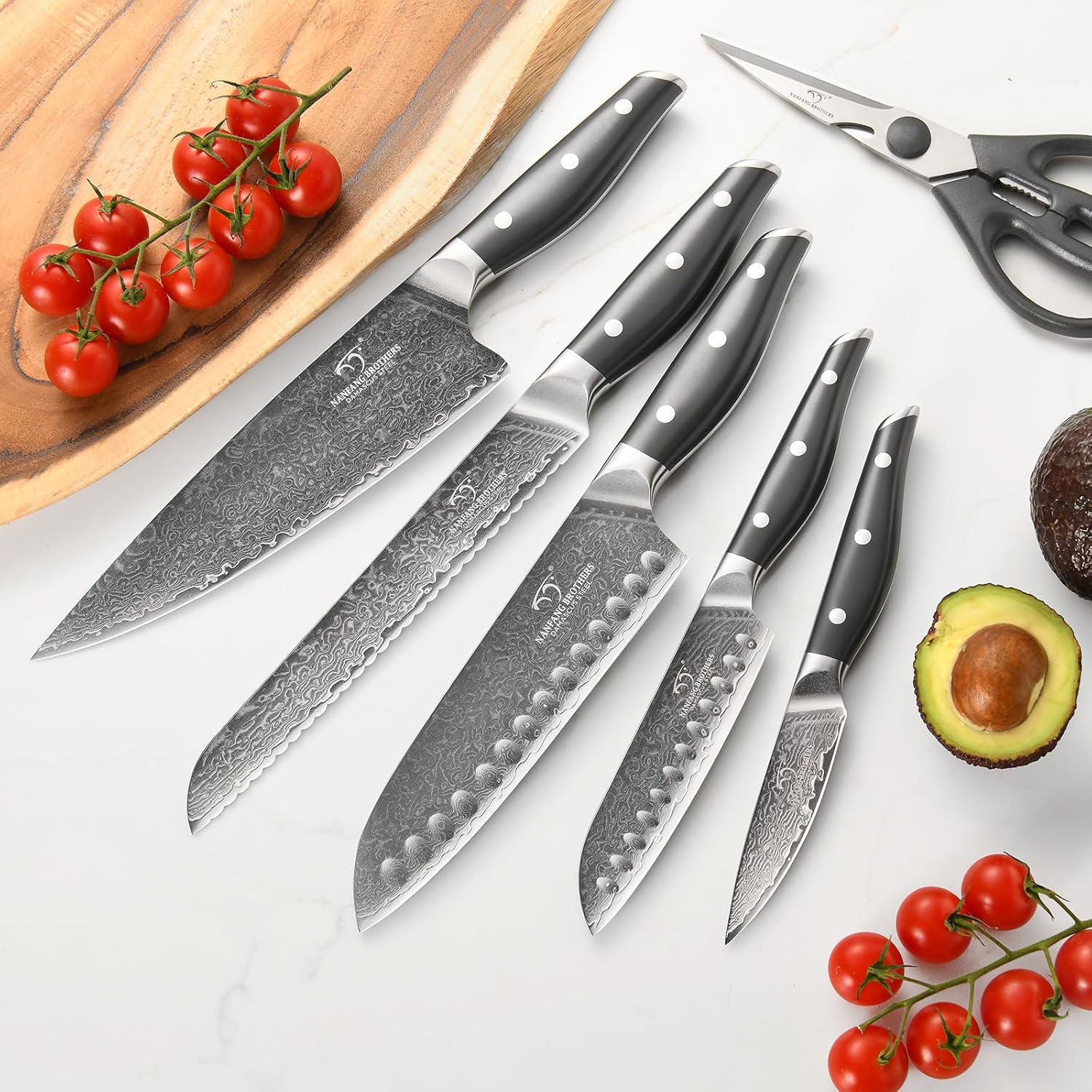 | Included Components | 8" Chef Knife, 8" Slicing Knife, 8" Bread Knife, 7" Santoku Knife, 5.5" Utility Knife, 3.5" Paring Knife, 6 Pieces 5" Steak Knives, Kitchen Shears, Knife Sharpener, Beechwood Block |