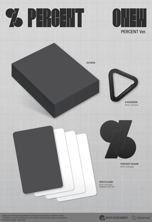 Immerse yourself in K-pop artistry with ONEW's highly anticipated 2nd album 'PERCENT' (PERCENT Ver.). This officially distributed, factory-sealed album features the talented vocalist from the legendary group SHINee. Each album package includes exclusive collectibles: a stylish karabiner, a special Percent charm, and a photo card of ONEW. As an added bonus, fans will receive an exclusive SHINee store gift photo card. This release will be available for pre-order starting July 15, 2025, and comes from GRIFFIN Entertainment. The album will count towards major Korean music charts including SYNNARA, HANTEO, CIRCLE, and KBS MUSIC BANK, making it a must-have for dedicated K-pop collectors. Manufactured in South Korea, this album represents ONEW's artistic evolution and commitment to musical excellence. Whether you're a long-time Shawol or new to ONEW's solo work, this album package offers both musical artistry and collectible value.